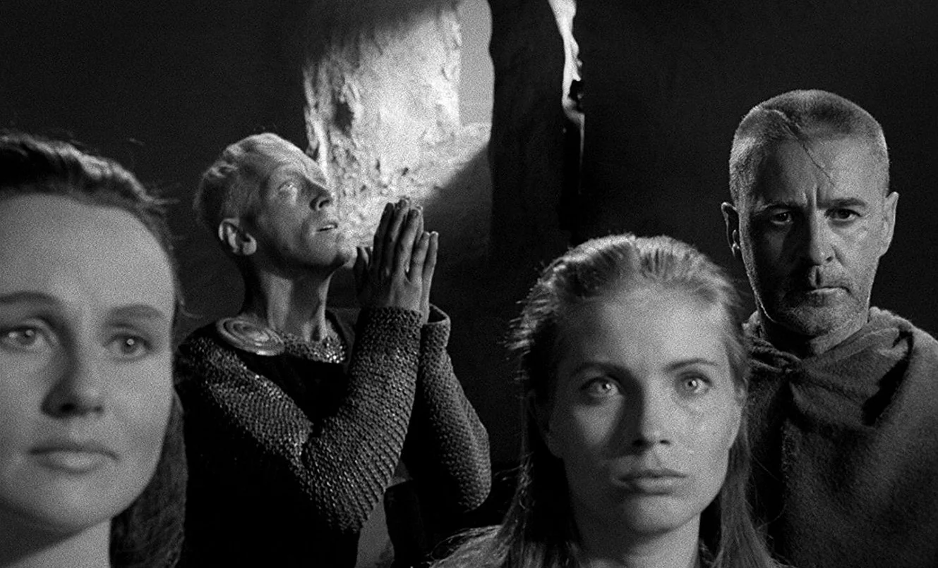 What I was most surprised to pick up in ‘Seventh Seal’ is the idea that action, good or bad, can give purpose to a man and relieve existential crisis. The backdrop is an England that is welcoming home knights from war as paranoia about the spreading plague invades every conversation and action. In this world, it makes perfect sense that Death is an actual character that is lingering around at all times, challenging and unsettling our protagonists. And it is in this context that we can understand the need to put less emphasis on right vs. wrong and more emphasis on being able to live life normally whatever it takes to stave off the fear and anxiety of impending death.